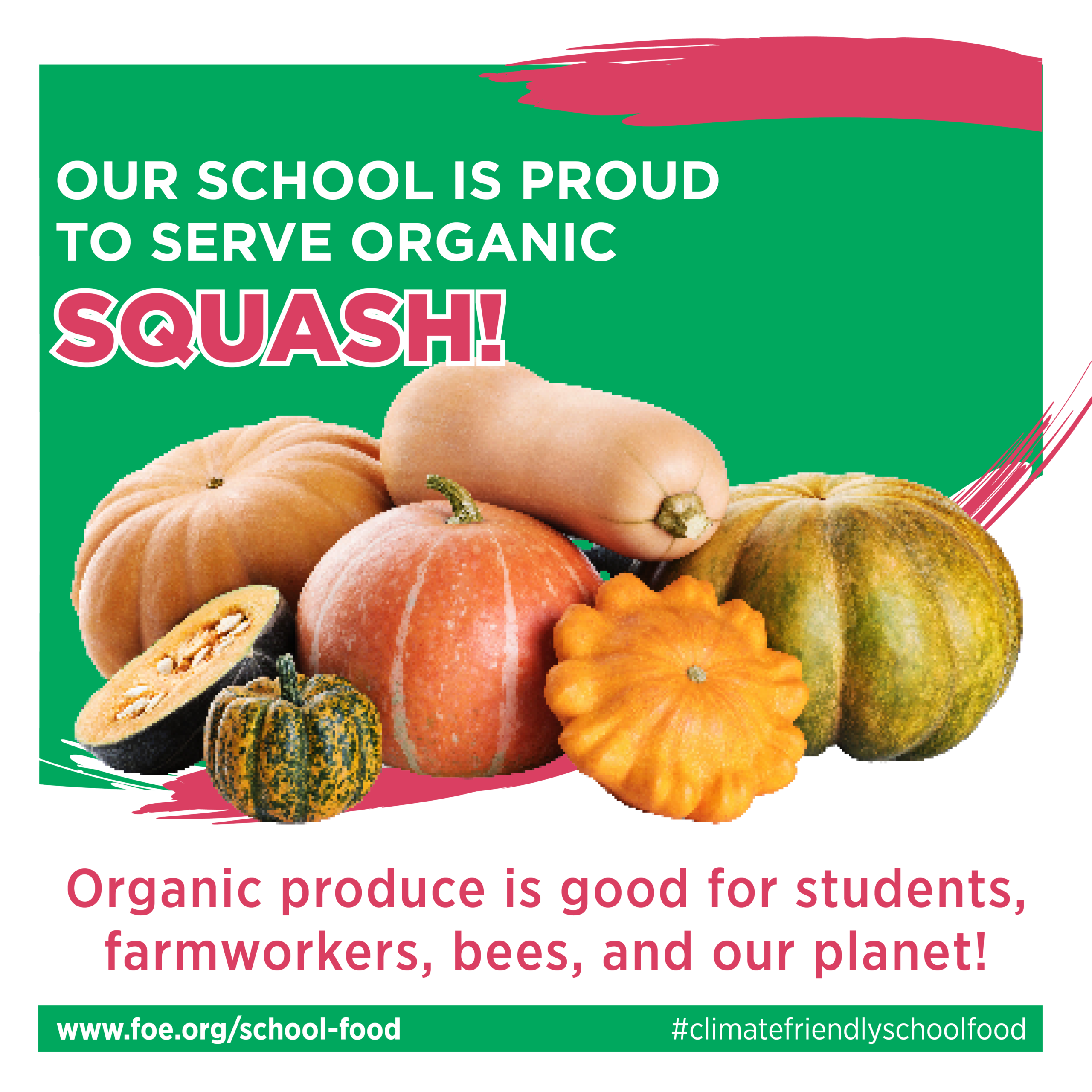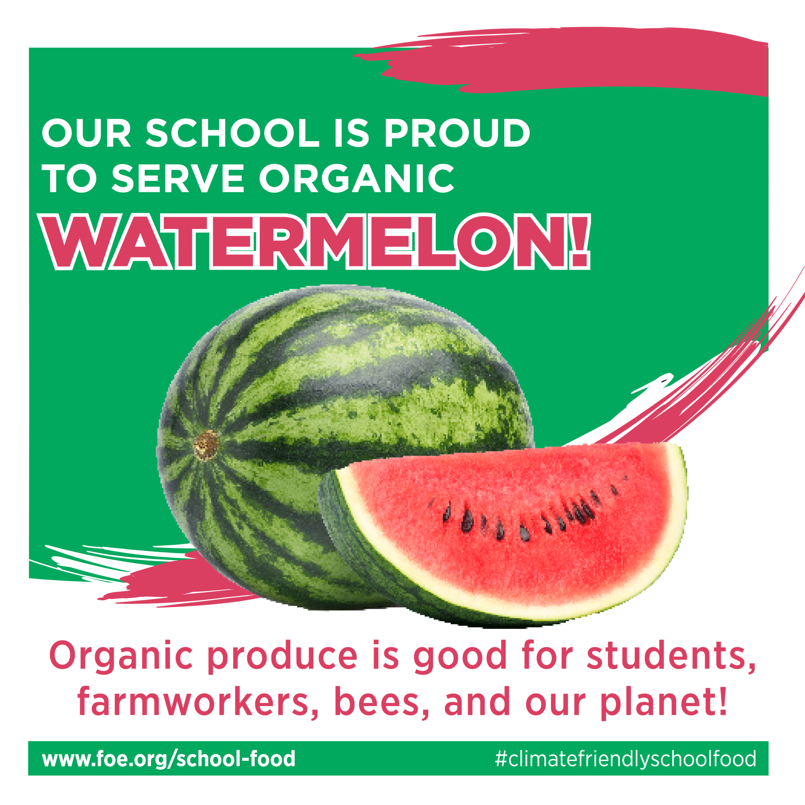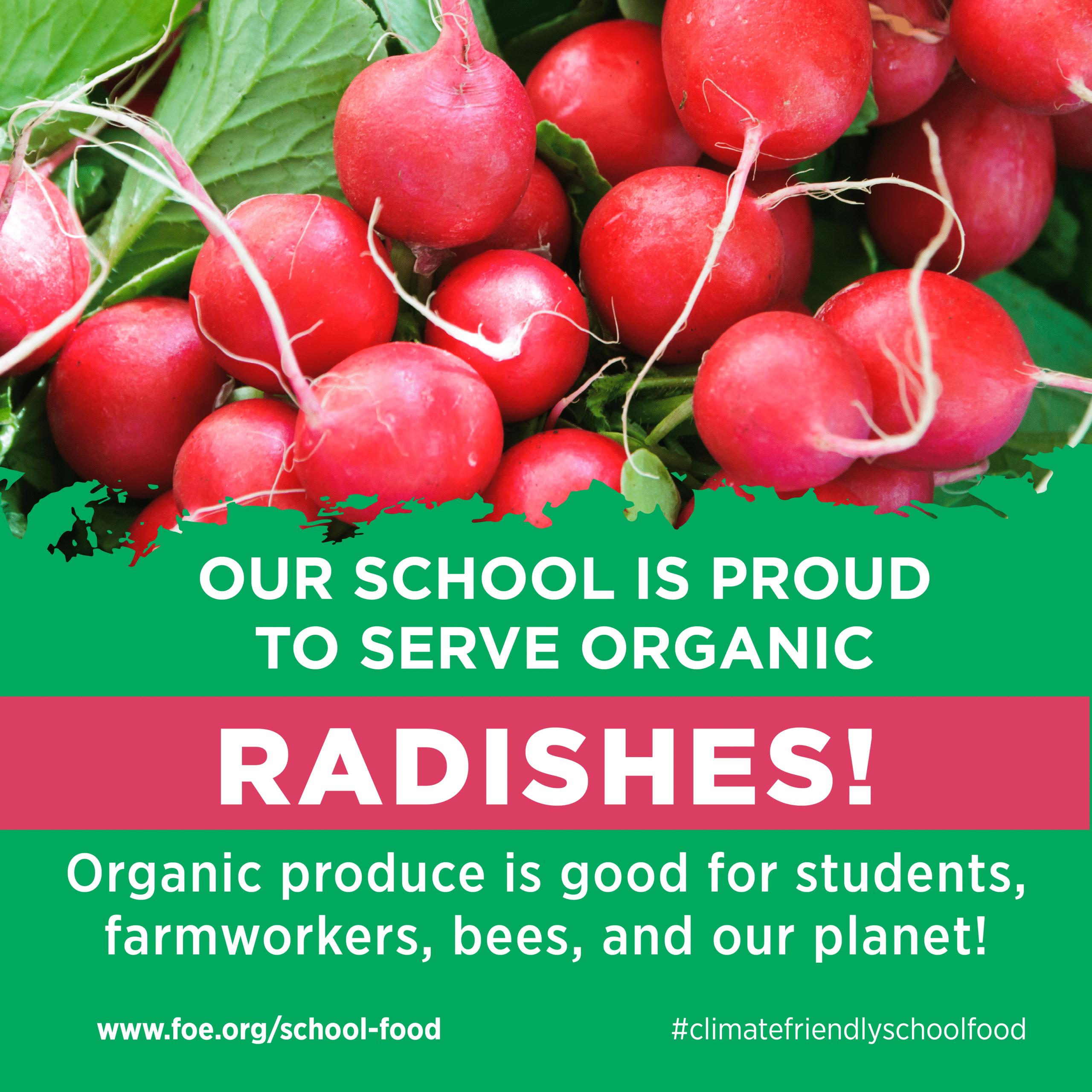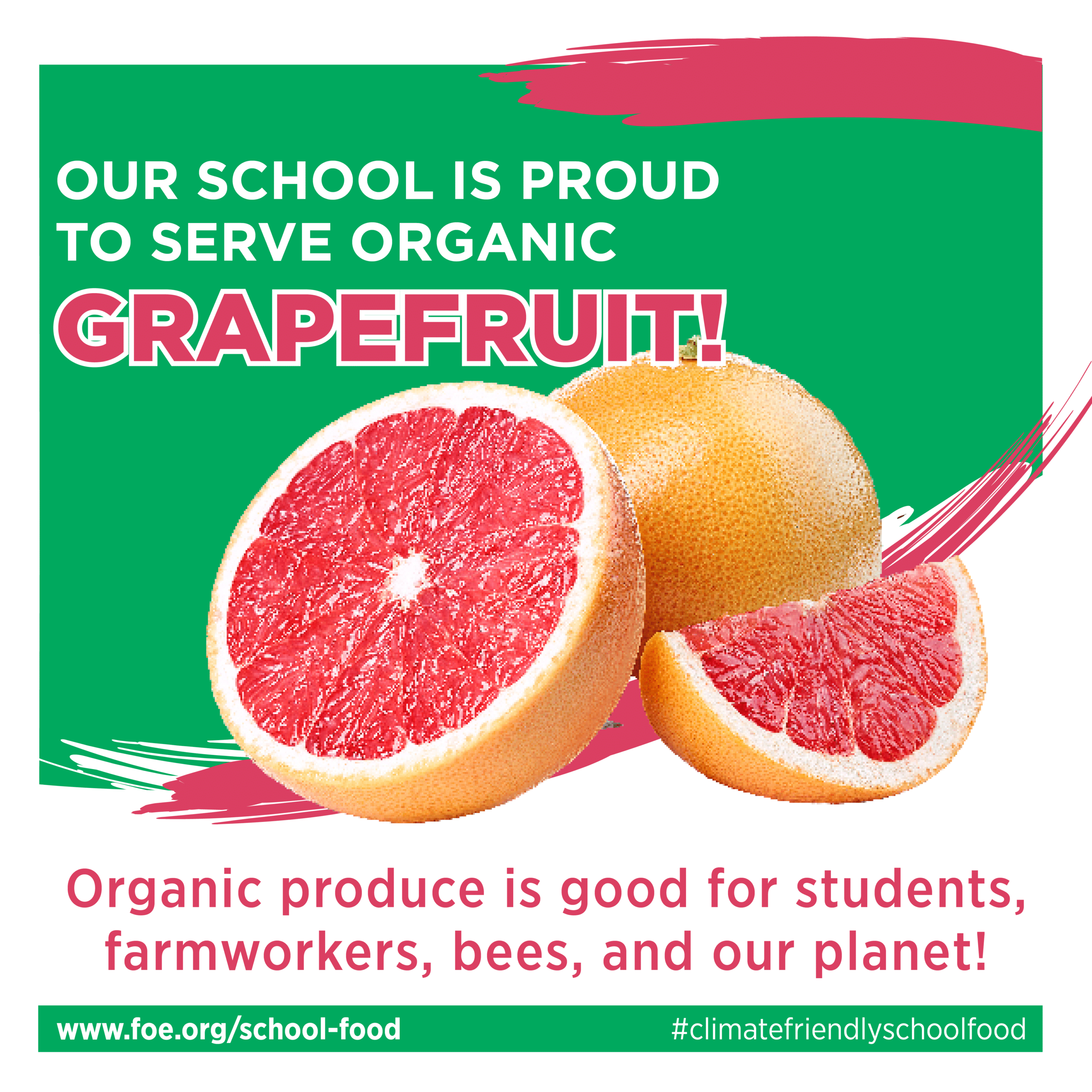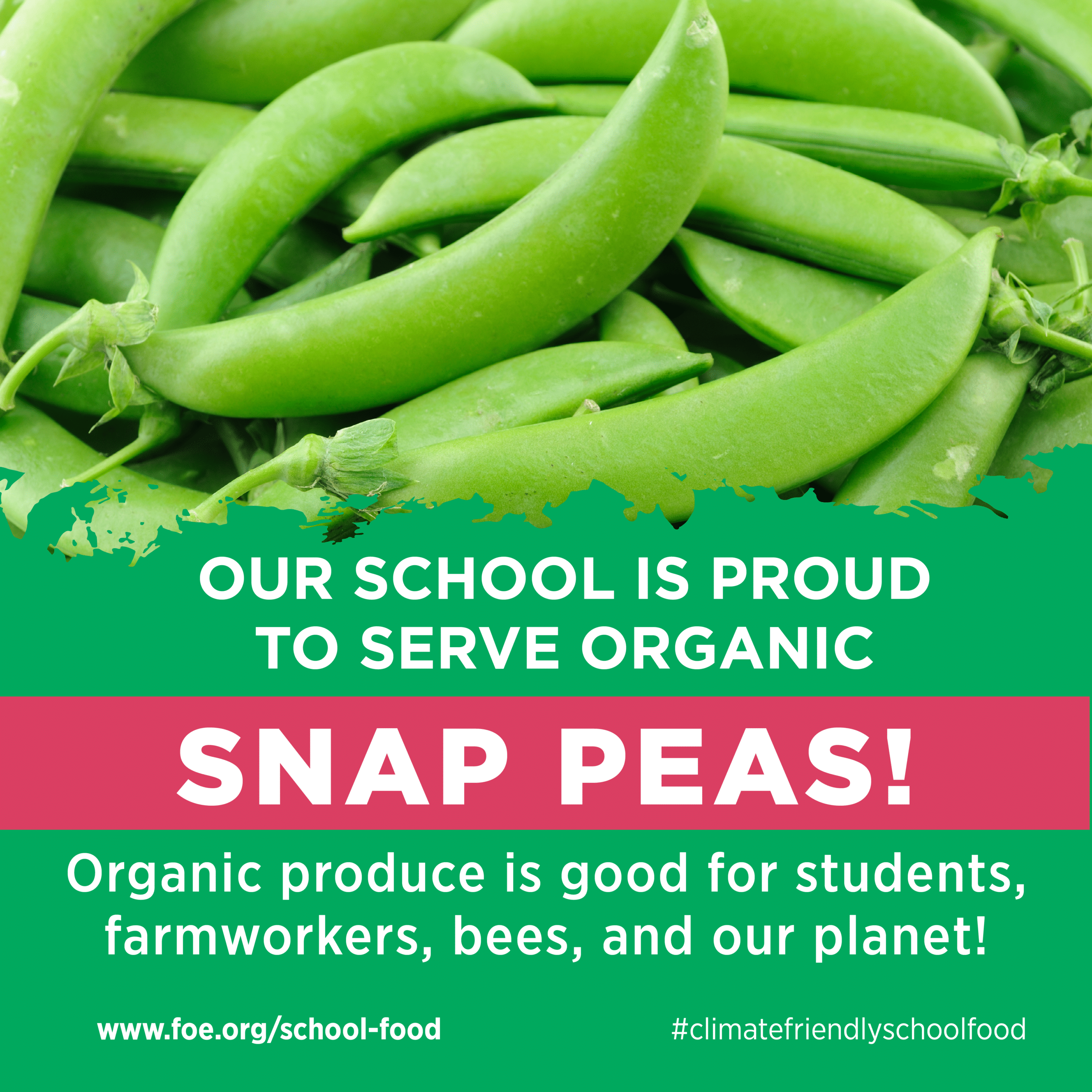 Materiales de marketing orgánico de Amigos de la Tierra, disponibles en inglés y Español, ayudar a informar a los estudiantes, padres y otras partes interesadas sobre los beneficios de comer productos orgánicos.