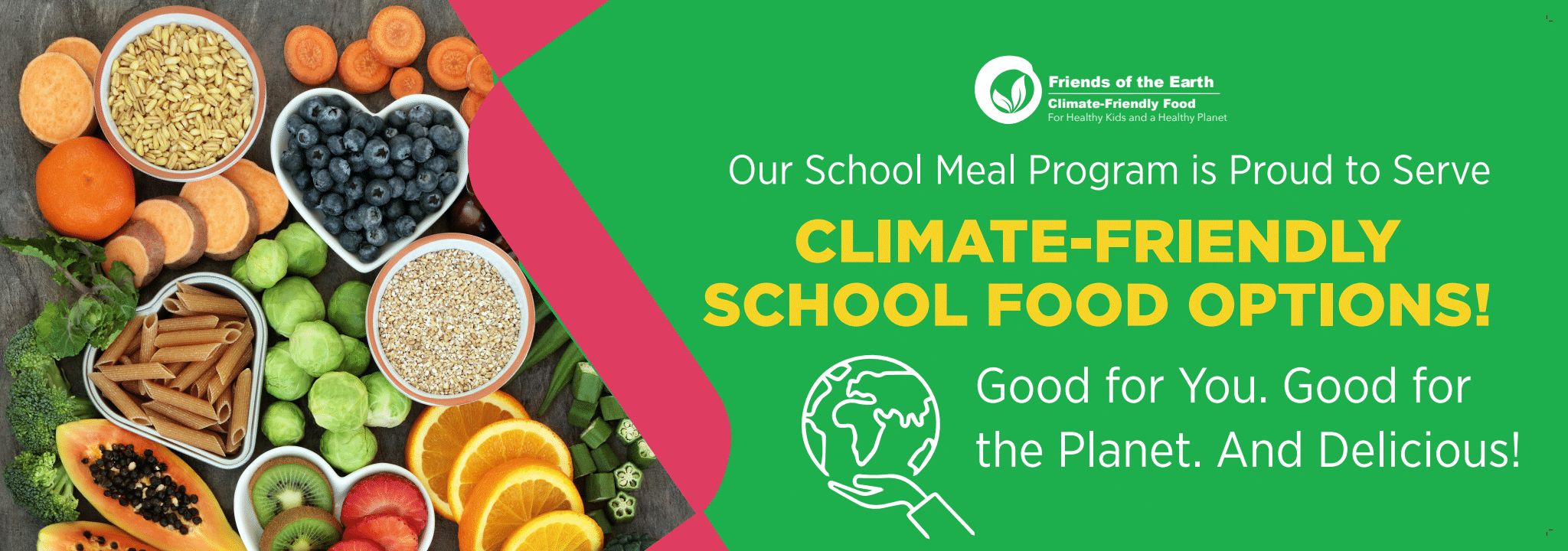 Esta postal de doble cara, disponible en inglés y español, presenta a las familias las opciones de menú de origen vegetal de la escuela y destaca los numerosos beneficios de los alimentos respetuosos con el medio ambiente. También incluye información sobre la importancia de las opciones orgánicas y la reducción del desperdicio de alimentos.