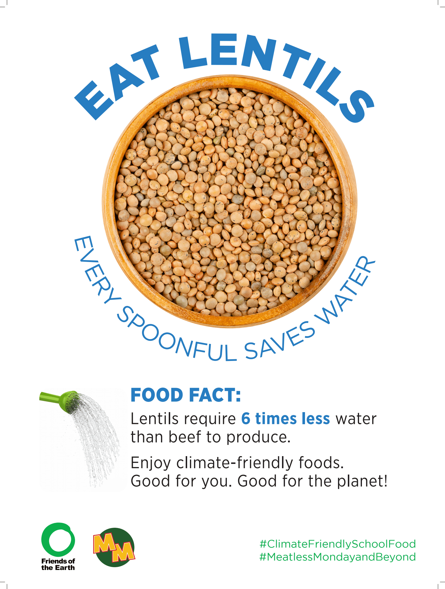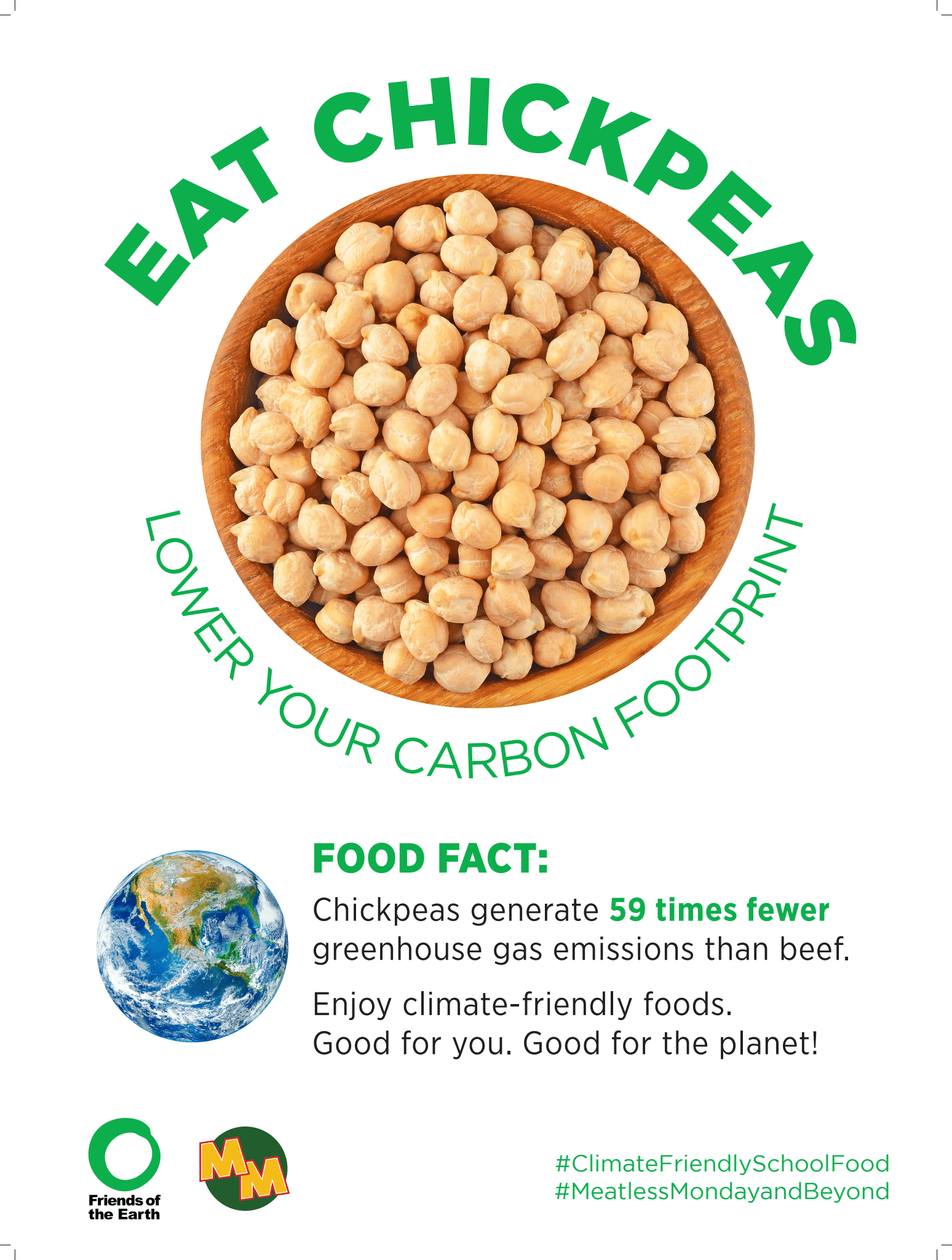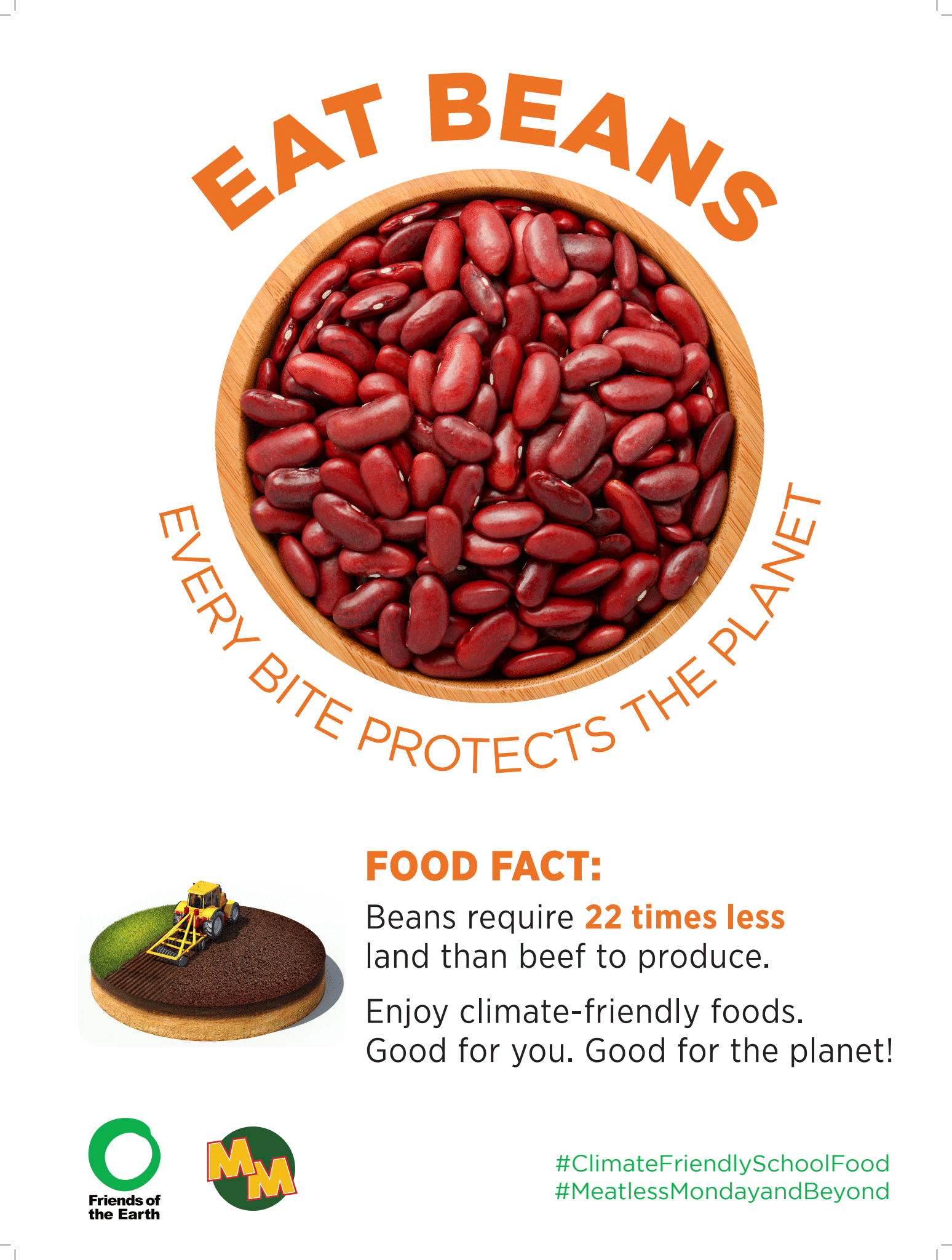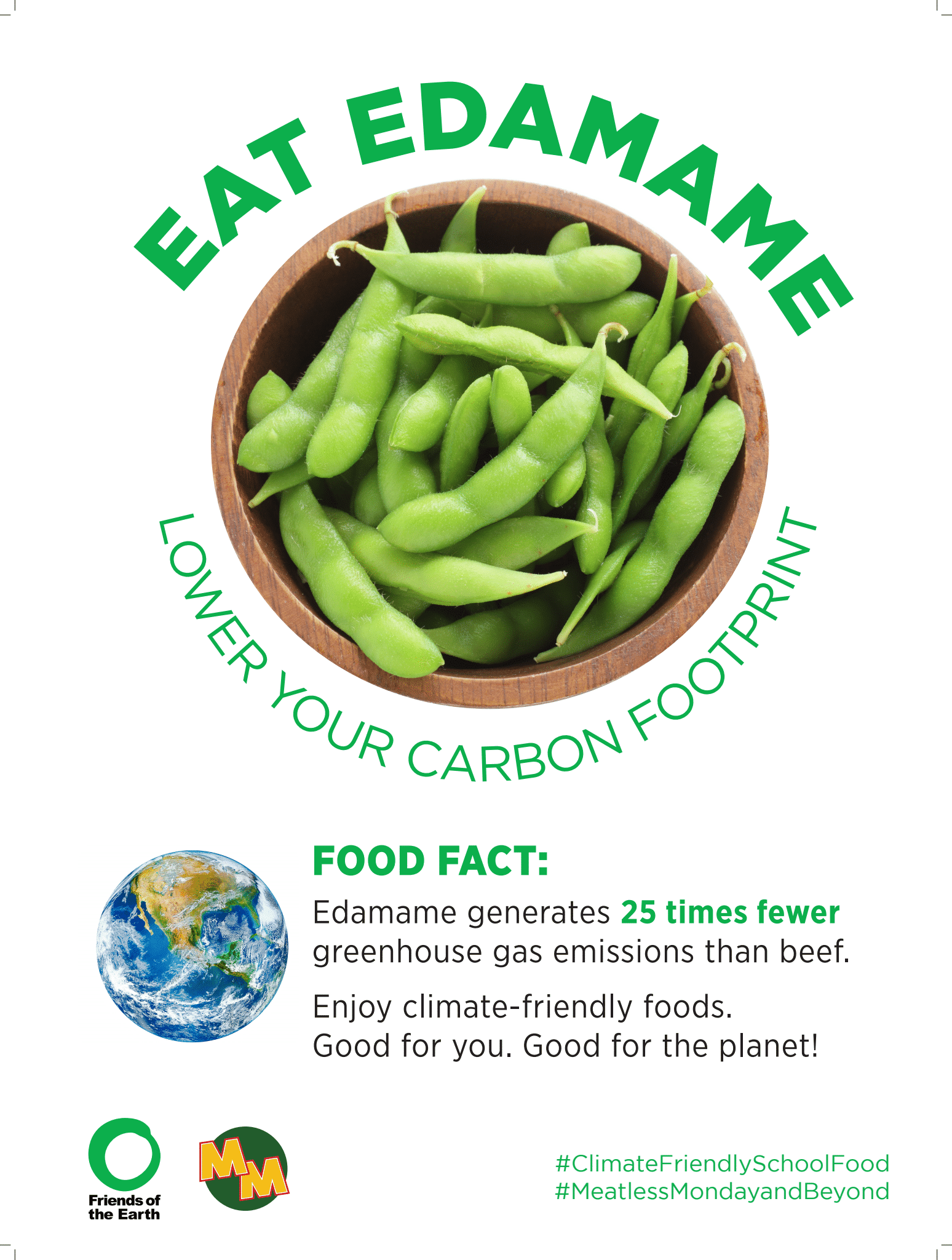 Materiales de marketing de base vegetal de Amigos de la Tierra, disponibles en inglés y Español, ayudar a promover opciones basadas en plantas en la cafetería e involucrar a los estudiantes con contenido divertido y educativo sobre alimentos básicos nutritivos como el tofu y las lentejas.